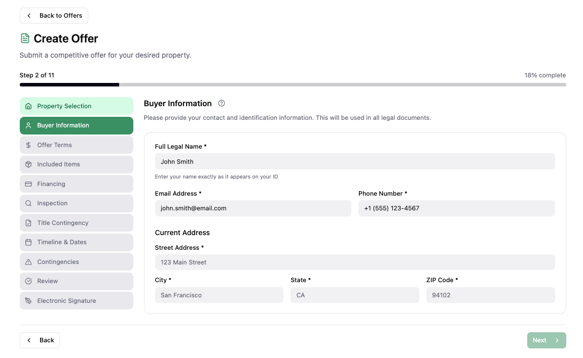- Create an offer and submit it to the seller/listing agent